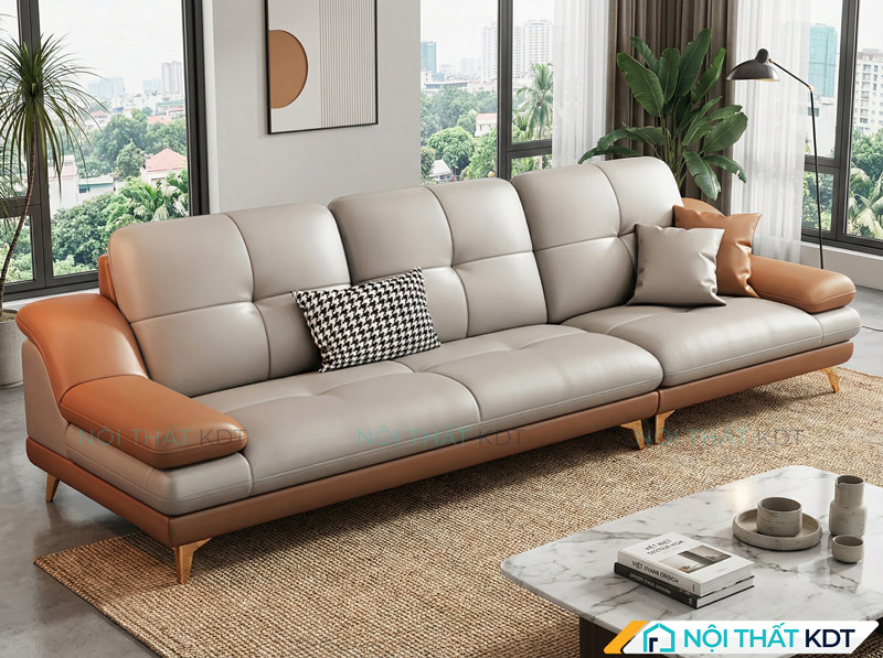 - Sofa da: Nếu bạn yêu thích vẻ sang trọng của sofa da nhưng hạn chế về ngân sách, da công nghiệp là lựa chọn lý tưởng. Chất liệu này có bề mặt bóng đẹp, chống thấm nước tốt, dễ lau chùi và có độ bền tương đối.