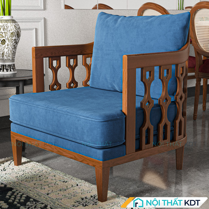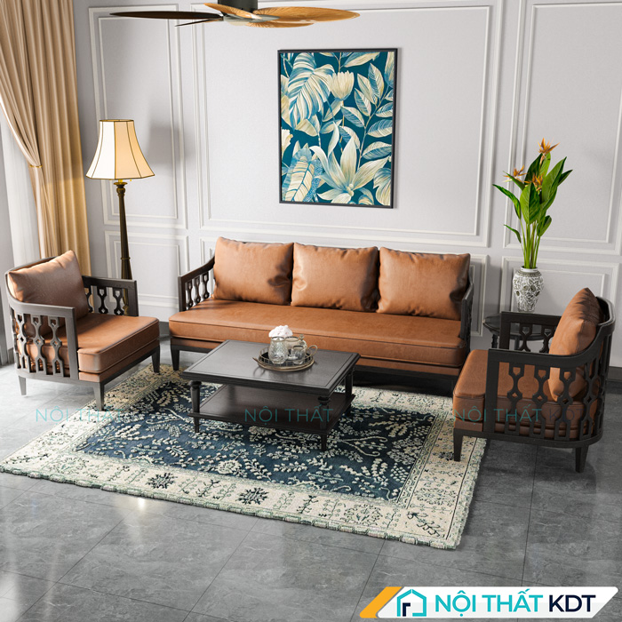 Bộ 3 ghế sofa gỗ phong cách Đông Dương với tông màu trầm ấm và cổ điển, gợi nhớ tới sự sang trọng, hoài cổ, phù hợp để bố trí trong bộ bàn ghế sofa phòng khách mang đậm dấu ấn thẩm mỹ và chiều sâu không gian.